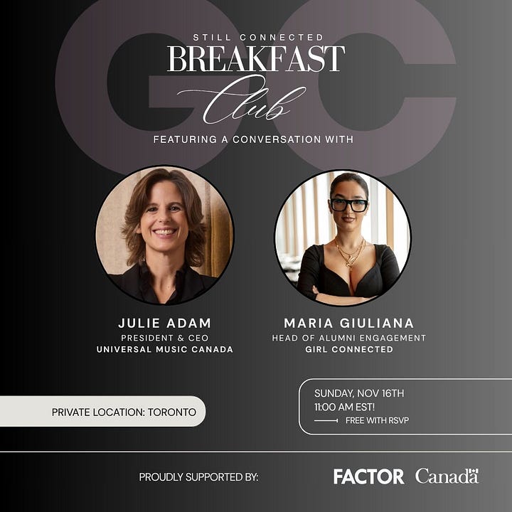 This Sunday, we have our last IRL event in Toronto. We will be speaking with Julie Adam, President & CEO of Universal Music Canada at Soho Toronto.